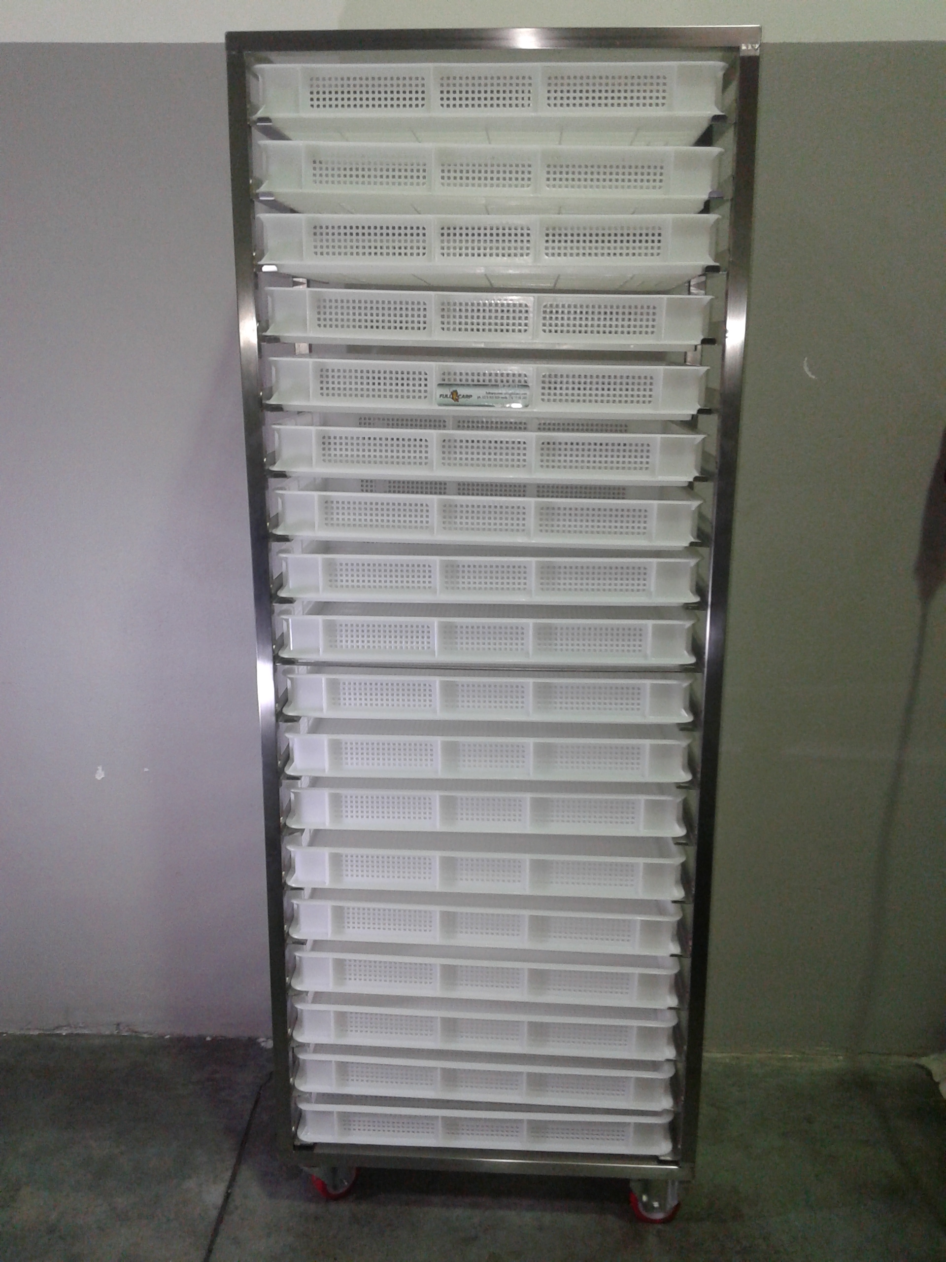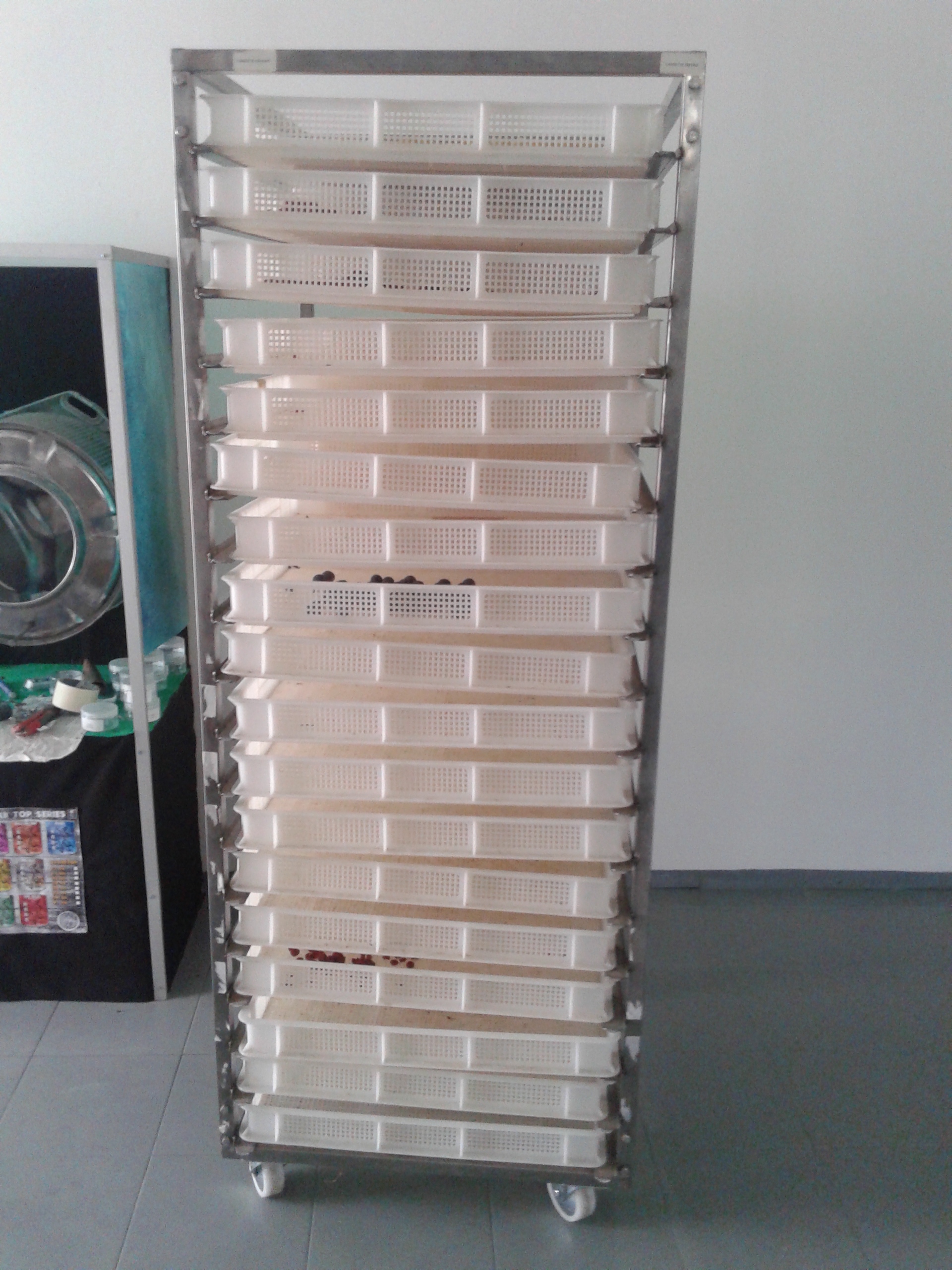 The drying trolley is designed to hold the largest number of baskets while maintaining good ventilation. The baskets used for this purpose are the same as those used in the Fullcarp Inox vaporizer.